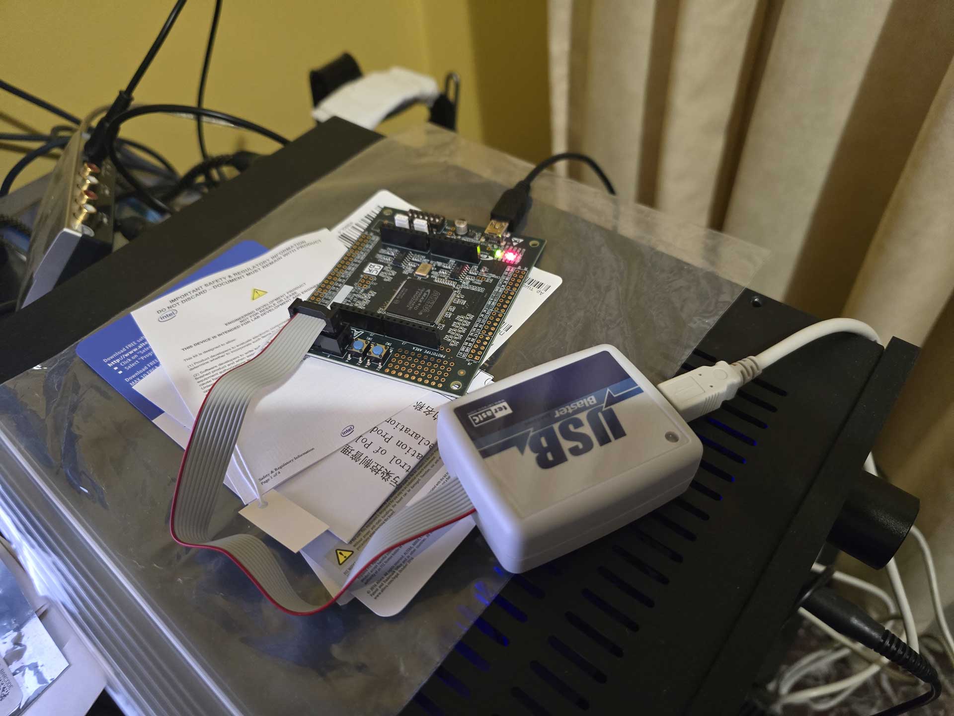 Anyway, with a working programmer on hand, I proceeded to use Quartus to write my first Verilog “blink” program and upload it to the dev board. The LED began to blink. Awesome.